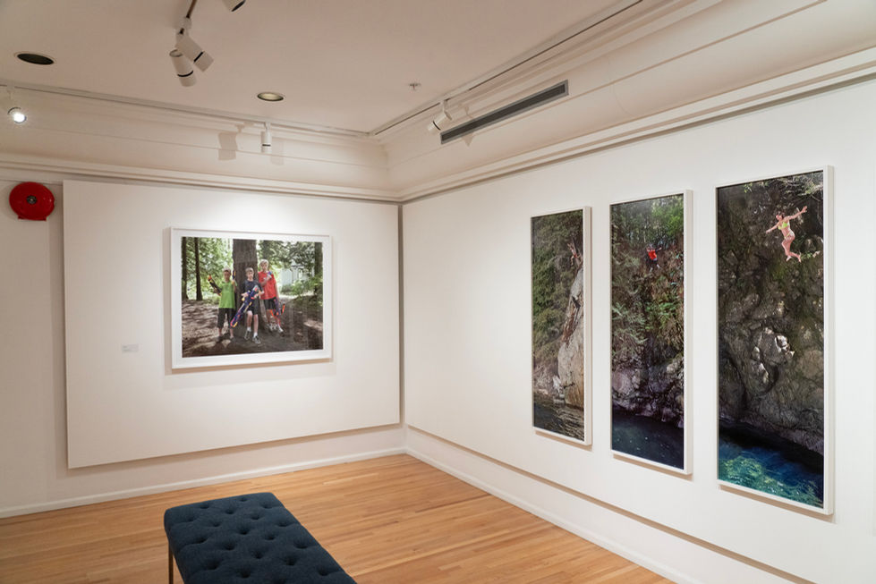The subjects in Jones’s outdoor photographs are shown performing rituals associated with labour and pastimes. Individuals are seen urban foraging, forest bathing, and recklessly casting themselves into the ocean from high vantage points. While the images in this exhibition resonate deeply with Vancouver’s long-standing “back to the land” hippie culture of the 1970s, they also inherently intersect with the disparate social and economic conditions felt by each person photographed. Indicative within these works are the difficulties in living in a city where the cost of living is high, and economic crises impact its most vulnerable people.
